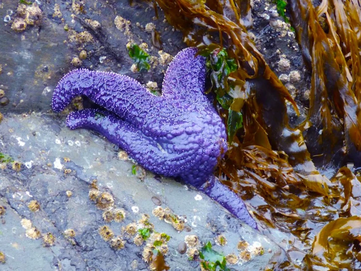 The tide was exceptionally low, exposing a rock face usually submerged. And there on the rock clung a purple (or ochre) sea star, the first I’d seen. Locals here on Lopez Island were excited to hear about it; sea stars in the Salish Sea have been scarce since they suffered a species-wide viral disease in 2013, their numbers only recently growing again. This summer they are returning.